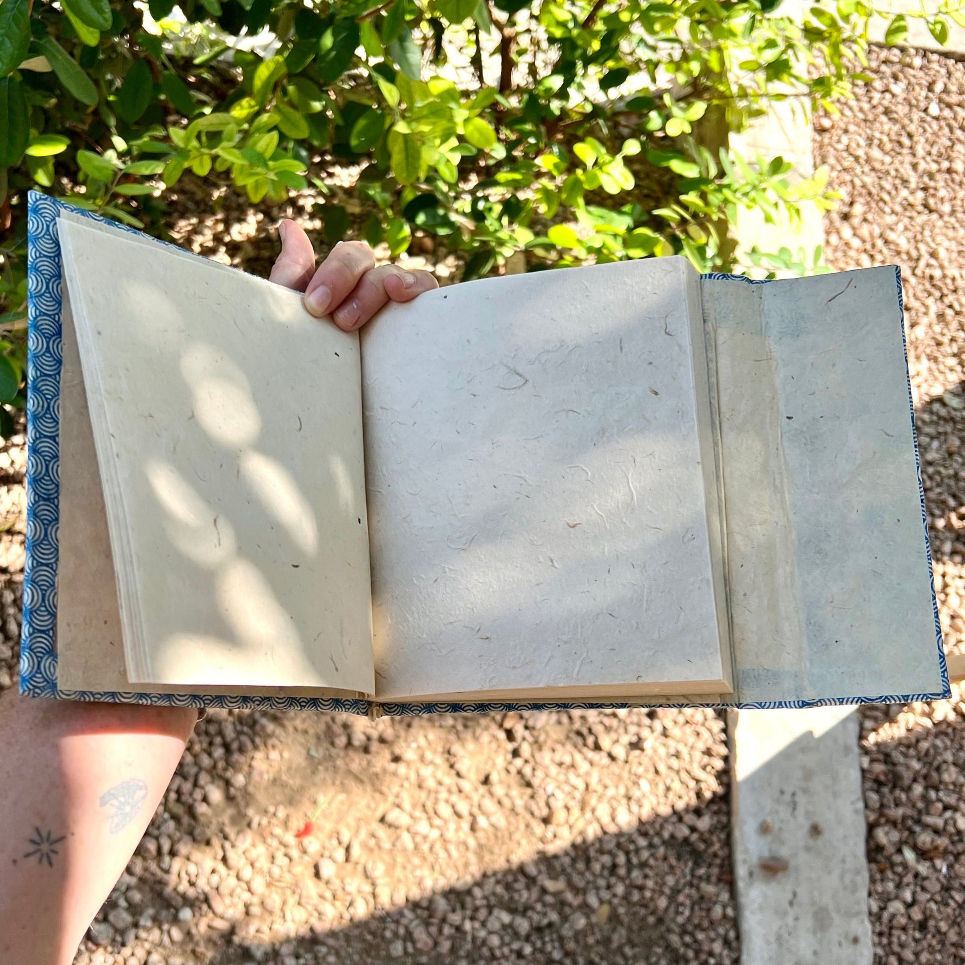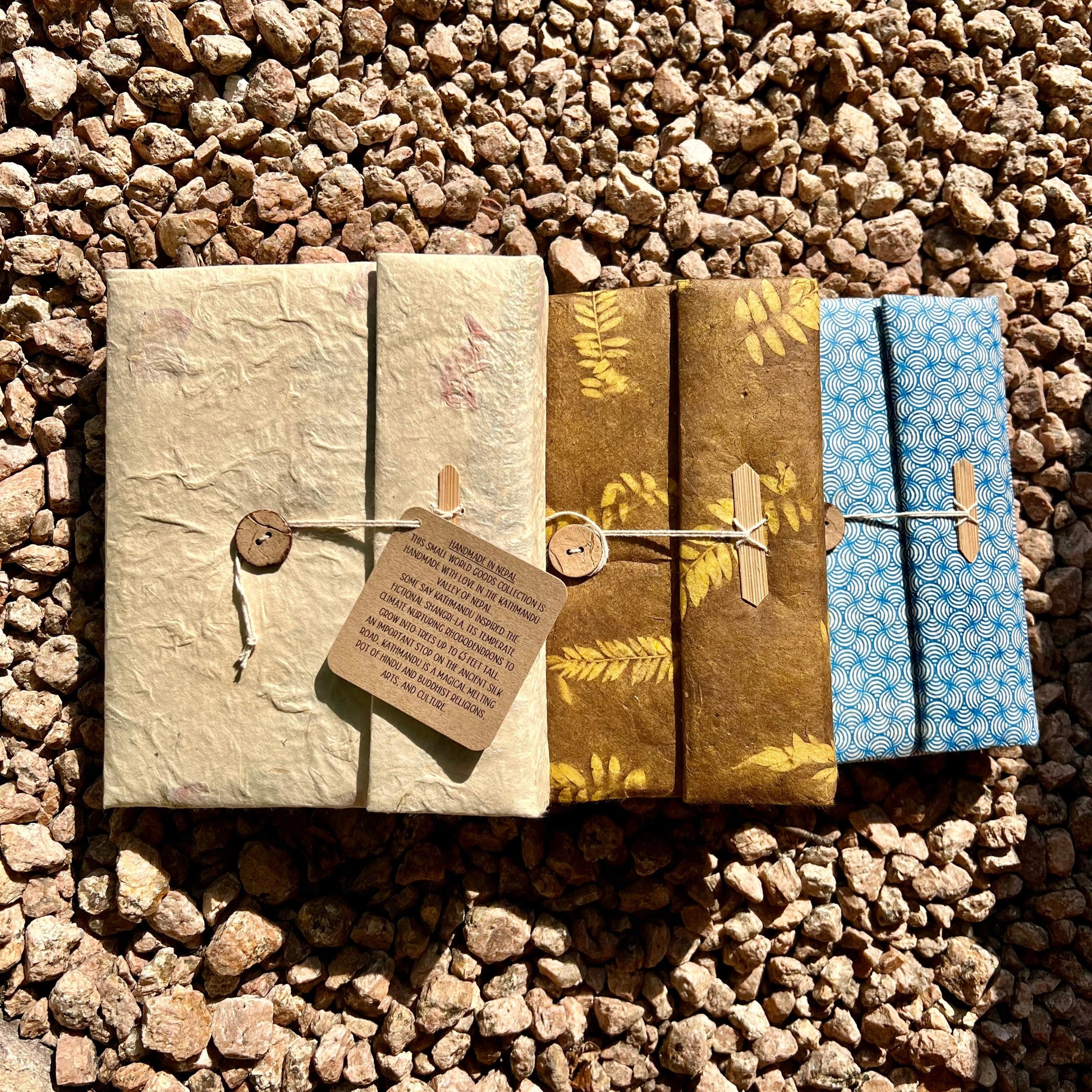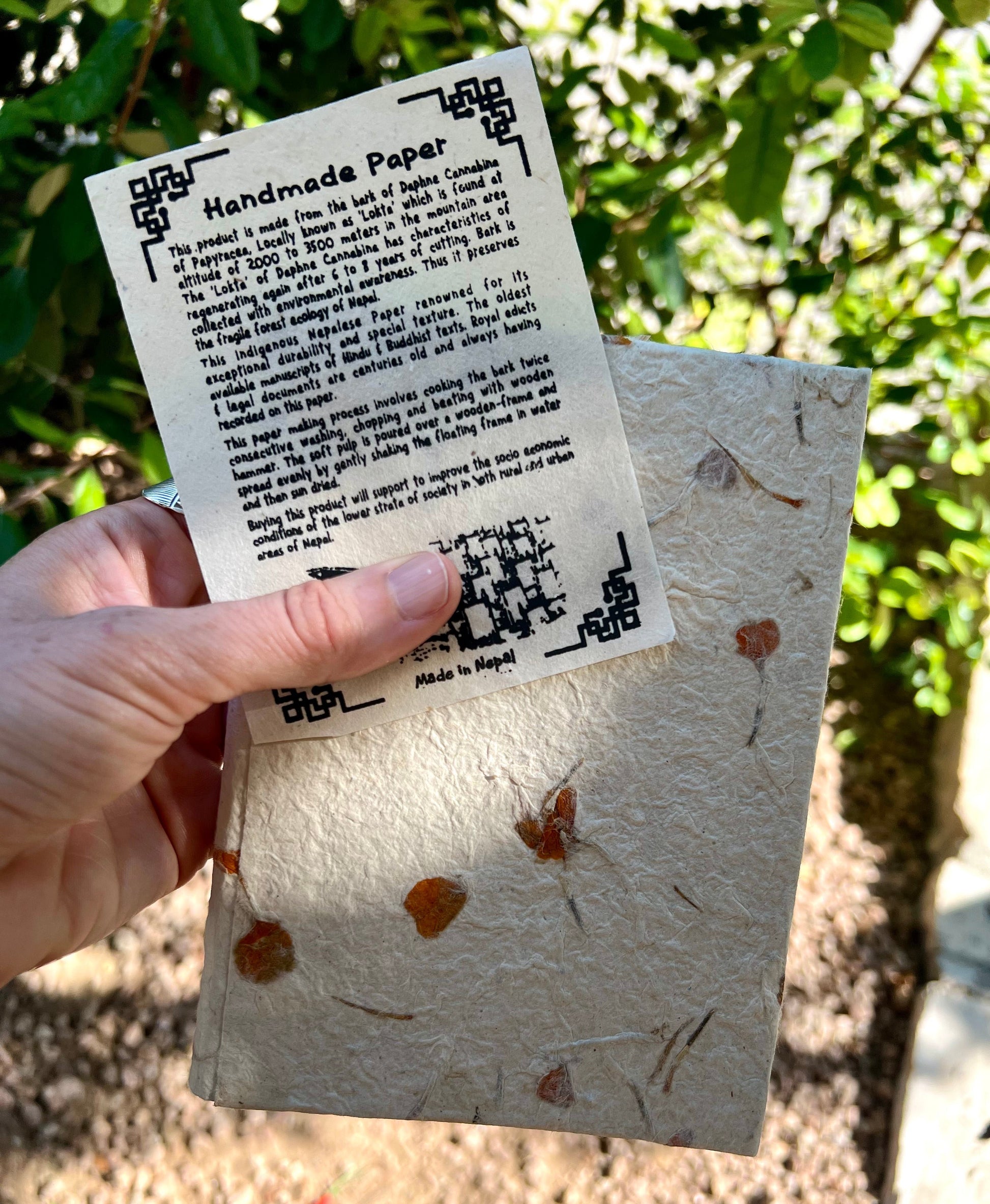 The loveliest journals, handcrafted with love in the Kathmandu Valley of Nepal. Available in a simple style, or with a buttoned closure. The journal cover, along with every page within, are handmade from the indigenous Lokta tree.