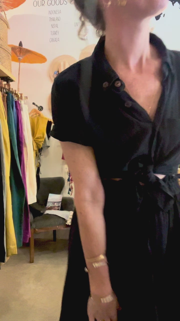 Krishna Button-Up Top, black