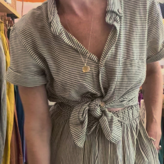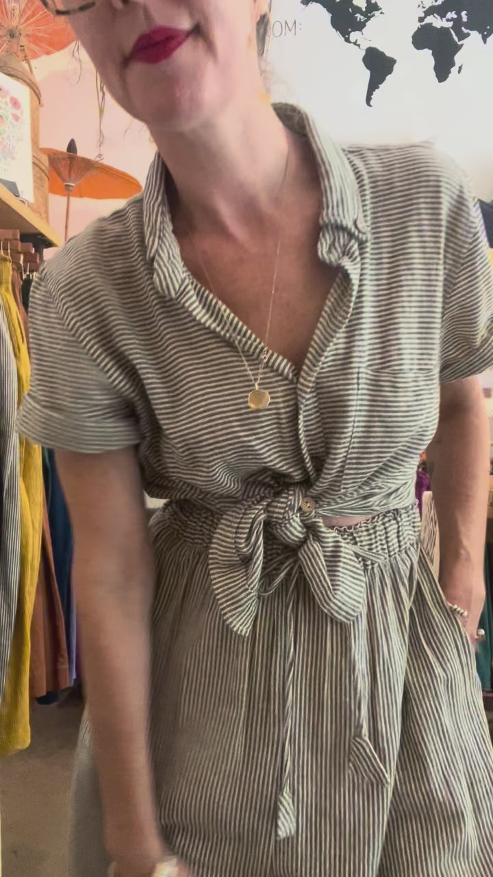 Our own, Dear Friend, button-up top, designed for everyone! Rock this unisex top open, loose, buttoned, or (our current favorite) tied at the waist for a more hourglass shape.