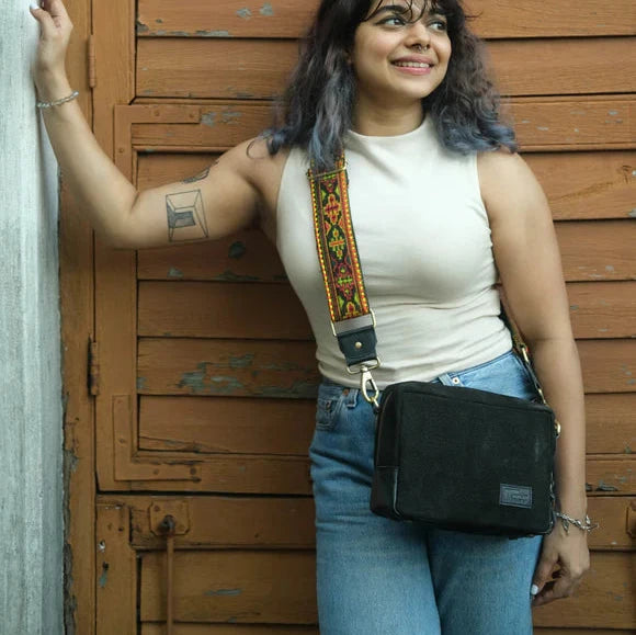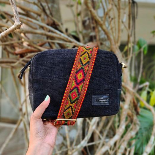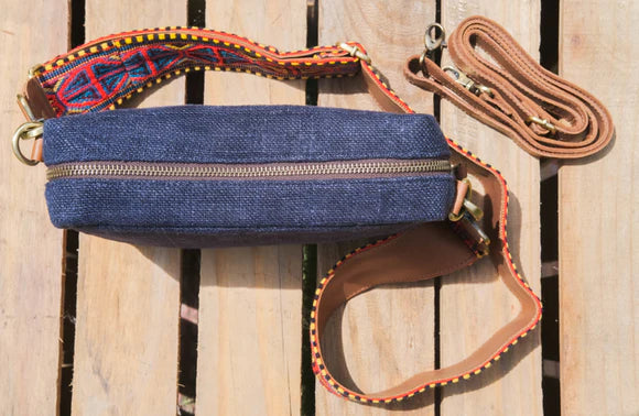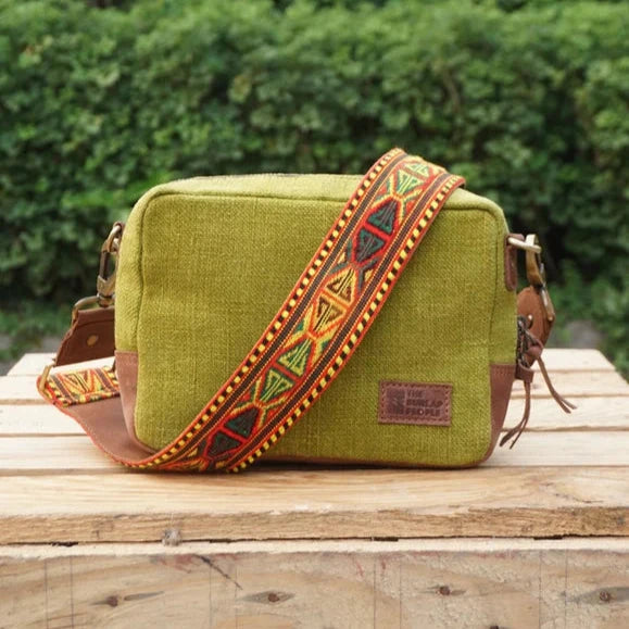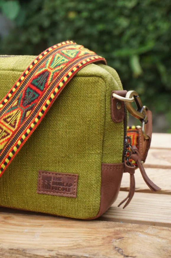 The Magic Box is our cutest sling bag yet, featuring a rectangular box bag, which you can create in absolutely any of our burlap colours and prints, and then match with one of our incredible embroidered Parvati Valley straps. You will receive a regular slender leather strap as well, and can wear the bag both ways, as you like!