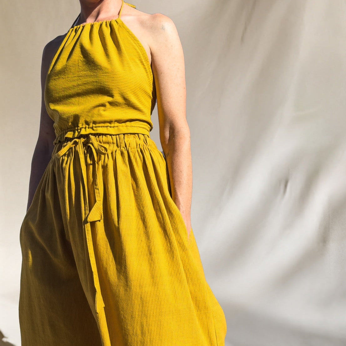 The women of our incredible partner collective in Nepal handloom the cotton, then color that fabric with gentle dyes, and finally hand make each piece. This hand loomed cotton just gets softer and comfier with wear.